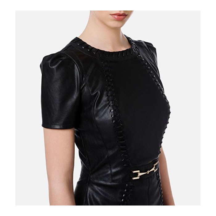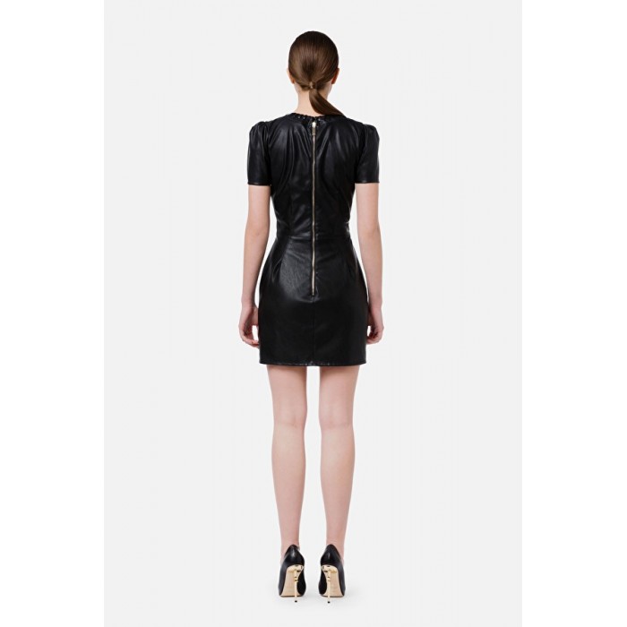 AB02716E2 Elisabetta Franchi abito in ecopelle con morsetto nero