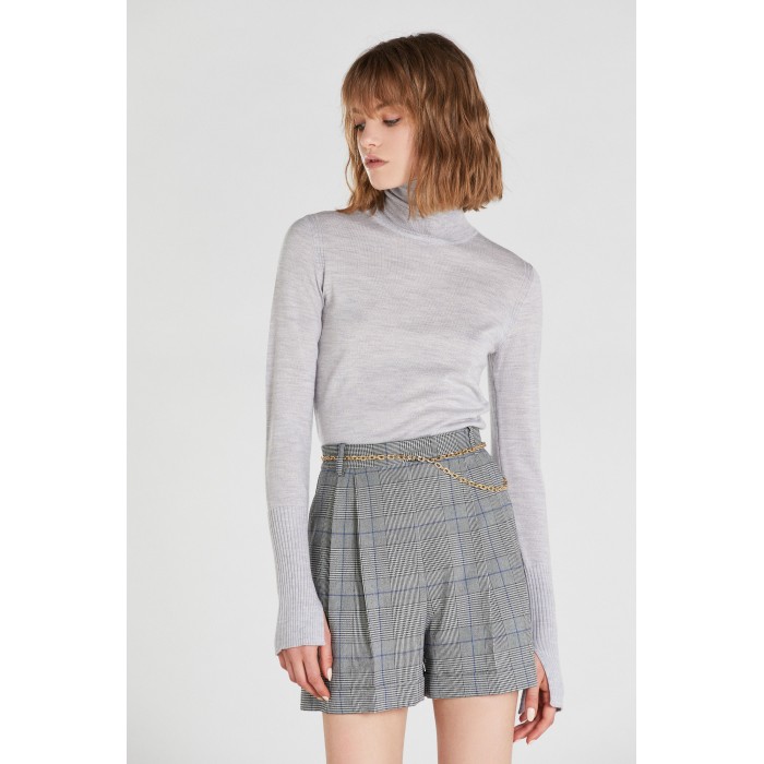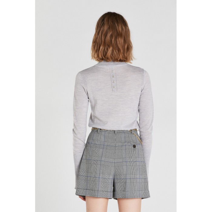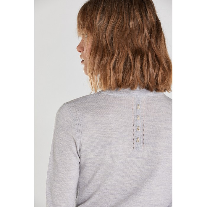 Lupetto in pura lana con collo alto e polso a doppia altezza con spacchetti per essere raffinato e super versatile con un tocco rock sul retro collo, grazie all'inserto con rivetti metallici e il logo Fly di Patrizia Pepe