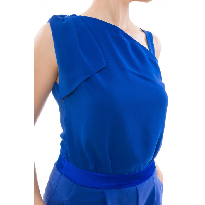 Molto sensuale la tuta monospalla che delinea le forme e le evidenzia rendendo la silhouette irresistibile. Abbinato ad una pochette della collezione o ad un charm in oro light, ti sorprenderà per la sua eleganza. Il fiocco sulla spalla è un particolare che la rende molto femminile.